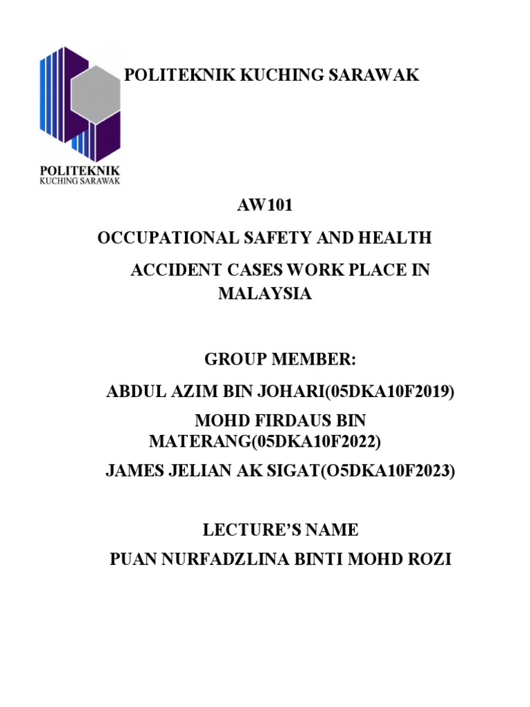 Osh Case Study 1 Duw10012 Occupational Safety Amp Health Case Study 1 Lecturer Name En Studocu